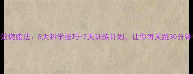 跳绳减脂高效燃脂法:5大科学技巧+7天训练计划,让你每天跳30分钟也能瘦5斤