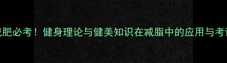 《科学减肥必考!健身理论与健美知识在减脂中的应用与考试重点》