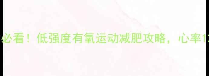 心率过慢人群必看!低强度有氧运动减肥攻略,心率120以下也能瘦