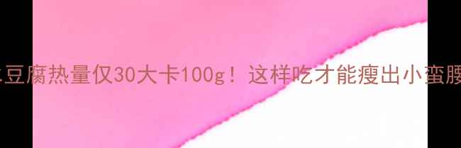 水豆腐热量仅30大卡/100g!这样吃才能瘦出小蛮腰
