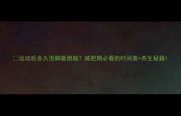 🔥运动后多久泡脚最燃脂?减肥期必看的时间表+养生秘籍