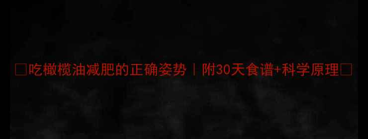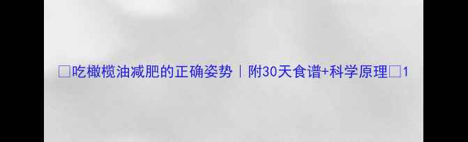 🔥【吃橄榄油减肥的正确姿势|附30天食谱+科学原理】🔥