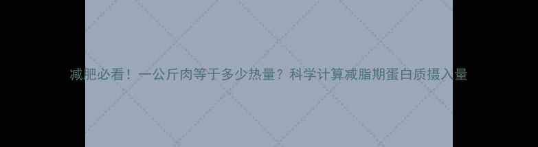 减肥必看!一公斤肉等于多少热量?科学计算减脂期蛋白质摄入量