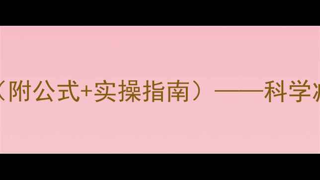 精准计算每日热量消耗附公式实操指南科学减肥必学的热量管理法则
