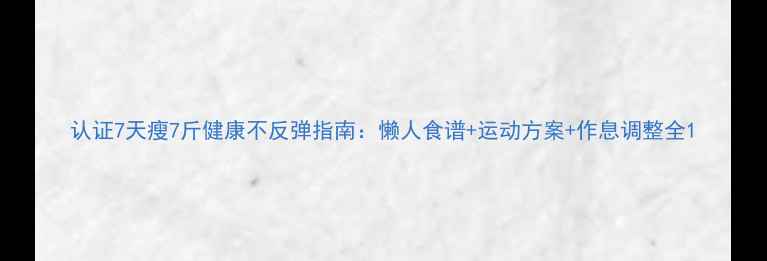 认证 | 7天瘦7斤健康不反弹指南:懒人食谱+运动方案+作息调整全