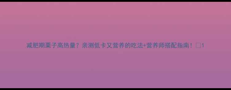 减肥期栗子高热量?亲测低卡又营养的吃法+营养师搭配指南!🍂