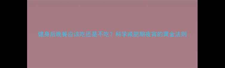 健身后晚餐应该吃还是不吃科学减肥期夜宵的黄金法则