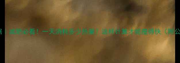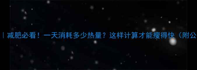 🔥最新数据|减肥必看!一天消耗多少热量?这样计算才能瘦得快(附公式+食谱)
