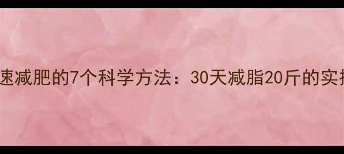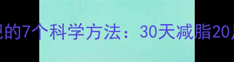 男性快速减肥的7个科学方法30天减脂20斤的实操指南