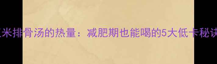 《玉米排骨汤的热量:减肥期也能喝的5大低卡秘诀》