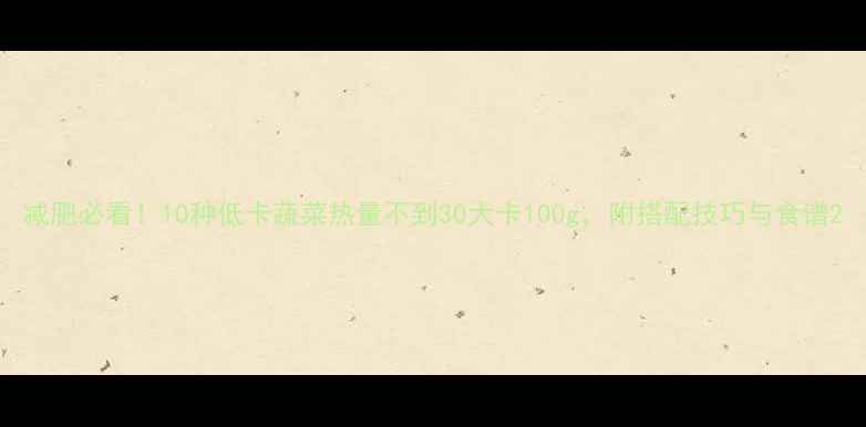 导语:根据《中国居民膳食指南()》建议,每日蔬菜摄入量应达300-500克,而选择低热量蔬菜不仅能帮助控制体重,还能补充膳食纤维和维生素。本文结合最新营养数据,整理出10种热量低于30大卡/100g的蔬菜清单,并附具体搭配方案和减脂食谱。