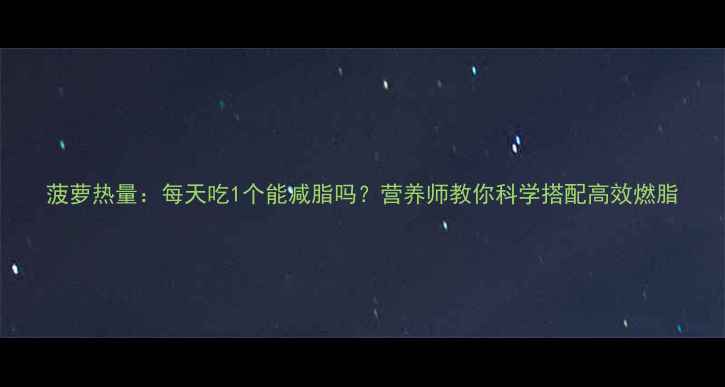 菠萝热量:每天吃1个能减脂吗?营养师教你科学搭配高效燃脂