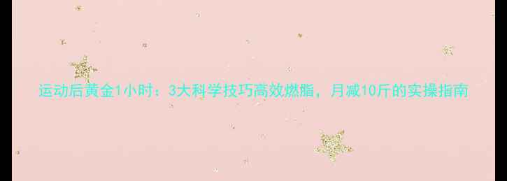 运动后黄金1小时:3大科学技巧高效燃脂,月减10斤的实操指南