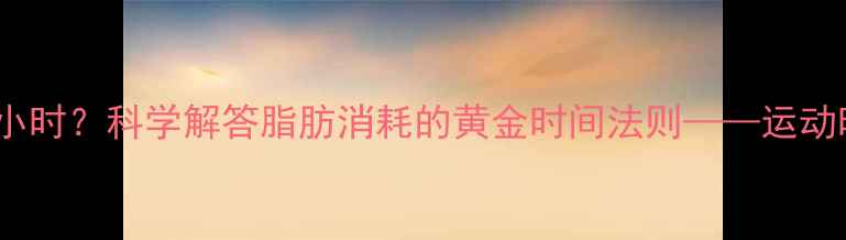 "每天运动1小时还是3小时?科学解答脂肪消耗的黄金时间法则——运动时长与减肥效率深度"