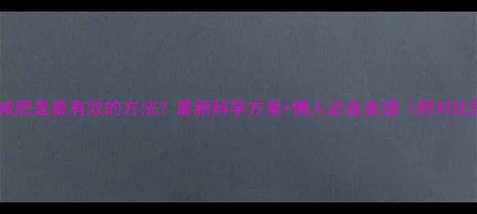 如何减肥是最有效的方法最新科学方案懒人必备食谱附对比图