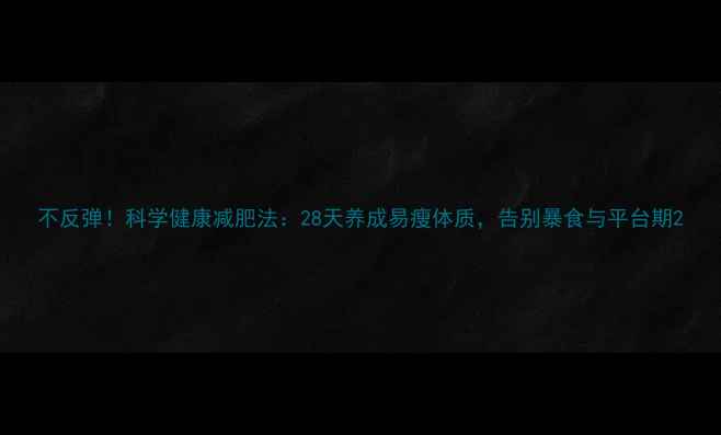 不反弹!科学健康减肥法:28天养成易瘦体质,告别暴食与平台期