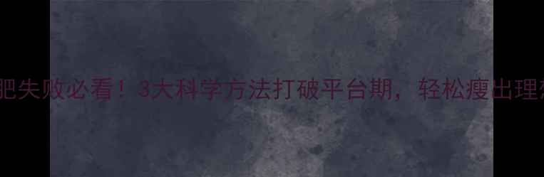 运动减肥失败必看!3大科学方法打破平台期,轻松瘦出理想体型
