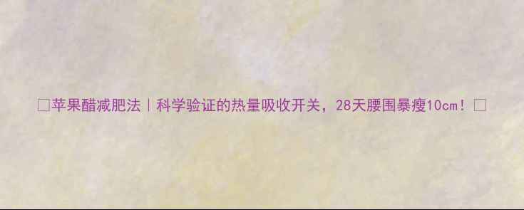 ✨苹果醋减肥法|科学验证的"热量吸收开关",28天腰围暴瘦10cm!🔥