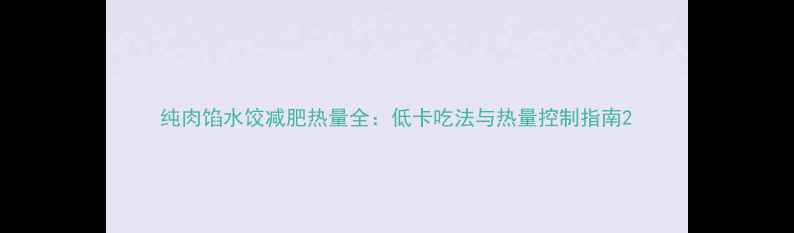 《纯肉馅水饺减肥热量全:低卡吃法与热量控制指南》