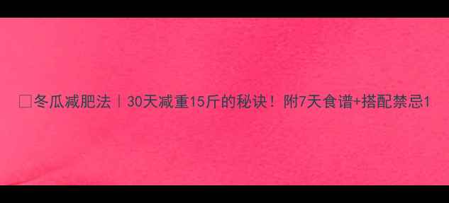 🌟冬瓜减肥法|30天减重15斤的秘诀!附7天食谱+搭配禁忌