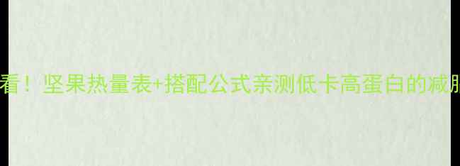 姐妹们!最近被问爆的减肥问题整理完毕!很多宝子以为坚果是减肥禁忌,其实科学吃对种类和分量,反而能加速燃脂!今天手把手教你们避开热量刺客,解锁低卡高蛋白的坚果吃法,附赠超全热量对照表+每日搭配公式~