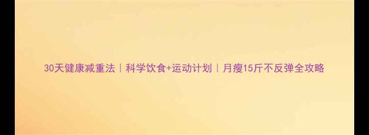 30天健康减重法|科学饮食+运动计划|月瘦15斤不反弹全攻略