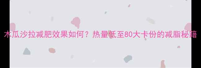 木瓜沙拉减肥效果如何?热量低至80大卡/份的减脂秘籍