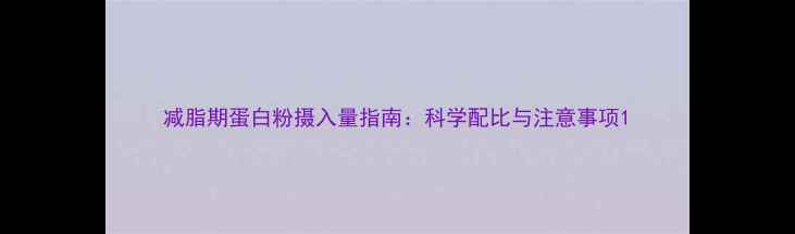 减脂期蛋白粉摄入量指南:科学配比与注意事项