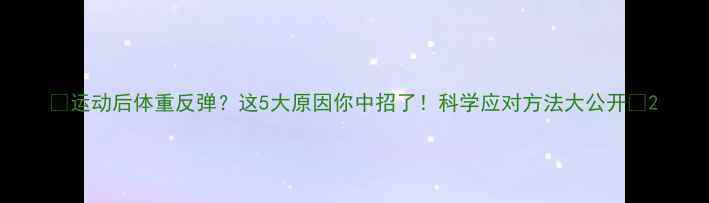 🔥运动后体重反弹?这5大原因你中招了!科学应对方法大公开🔥