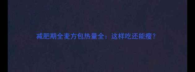 一、全麦方包热量真相:减肥期间能吃吗?