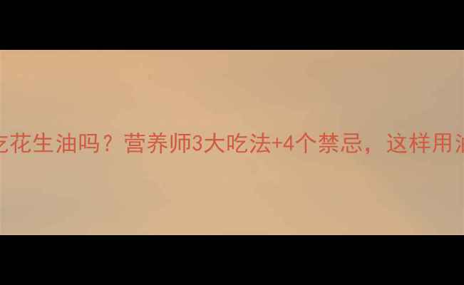 减脂期可以吃花生油吗?营养师3大吃法+4个禁忌,这样用油才不会胖!