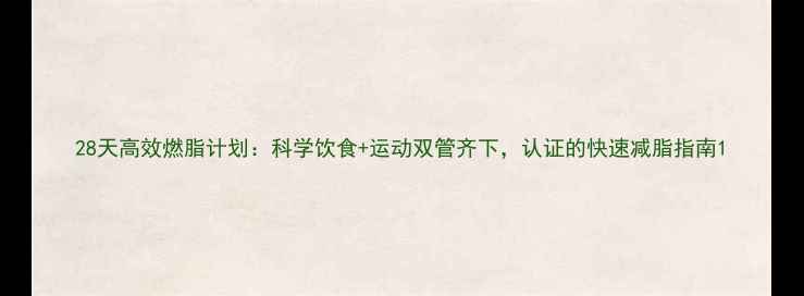 28天高效燃脂计划:科学饮食+运动双管齐下,认证的快速减脂指南