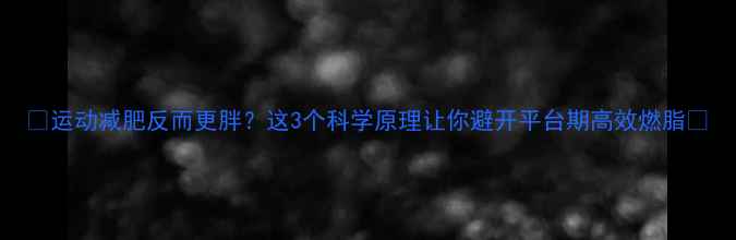 🔥运动减肥反而更胖?这3个科学原理让你避开平台期高效燃脂💪