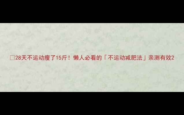 🔥28天不运动瘦了15斤!懒人必看的「不运动减肥法」亲测有效