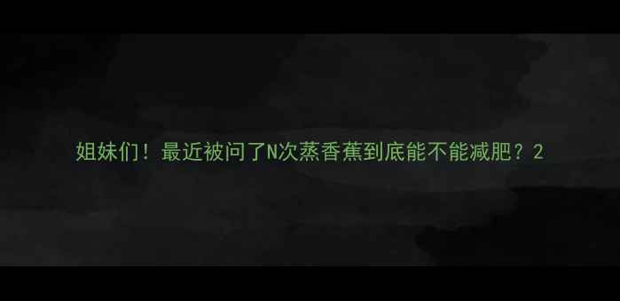 姐妹们!最近被问了N次"蒸香蕉到底能不能减肥"?
