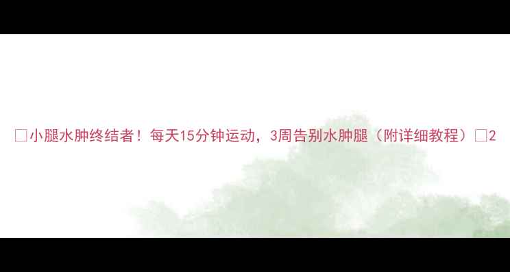 ✨小腿水肿终结者!每天15分钟运动,3周告别水肿腿(附详细教程)✨