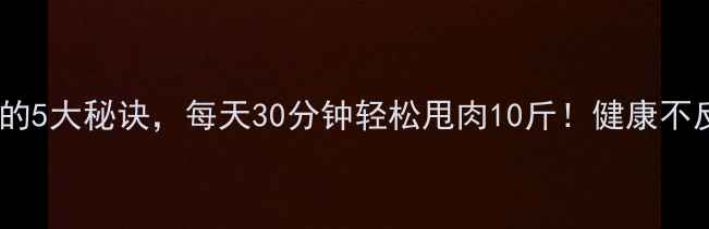 不花钱快速减肥的5大秘诀每天30分钟轻松甩肉10斤健康不反弹的实操指南