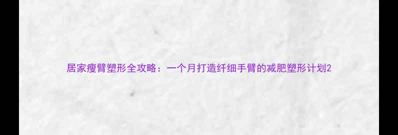 居家瘦臂塑形全攻略一个月打造纤细手臂的减肥塑形计划